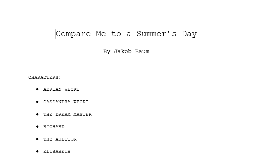 Jakob’s newest work in progress, set in a dystopian future with inspiration from George Orwell’s 1984, Ray Bradbury’s Fahrenheit 451, and elements from Arthur Miller’s Death of a Salesman.